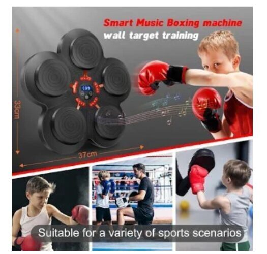Muzikos ritmo kovos aparatas: Šis treniruoklis leidžia jums treniruotis pagal muzikos ritmą, padėdamas gerinti koordinaciją ir greitį. Muzikos takeliai skatina smūgius ir padeda išlaikyti energingą treniruotės tempą.